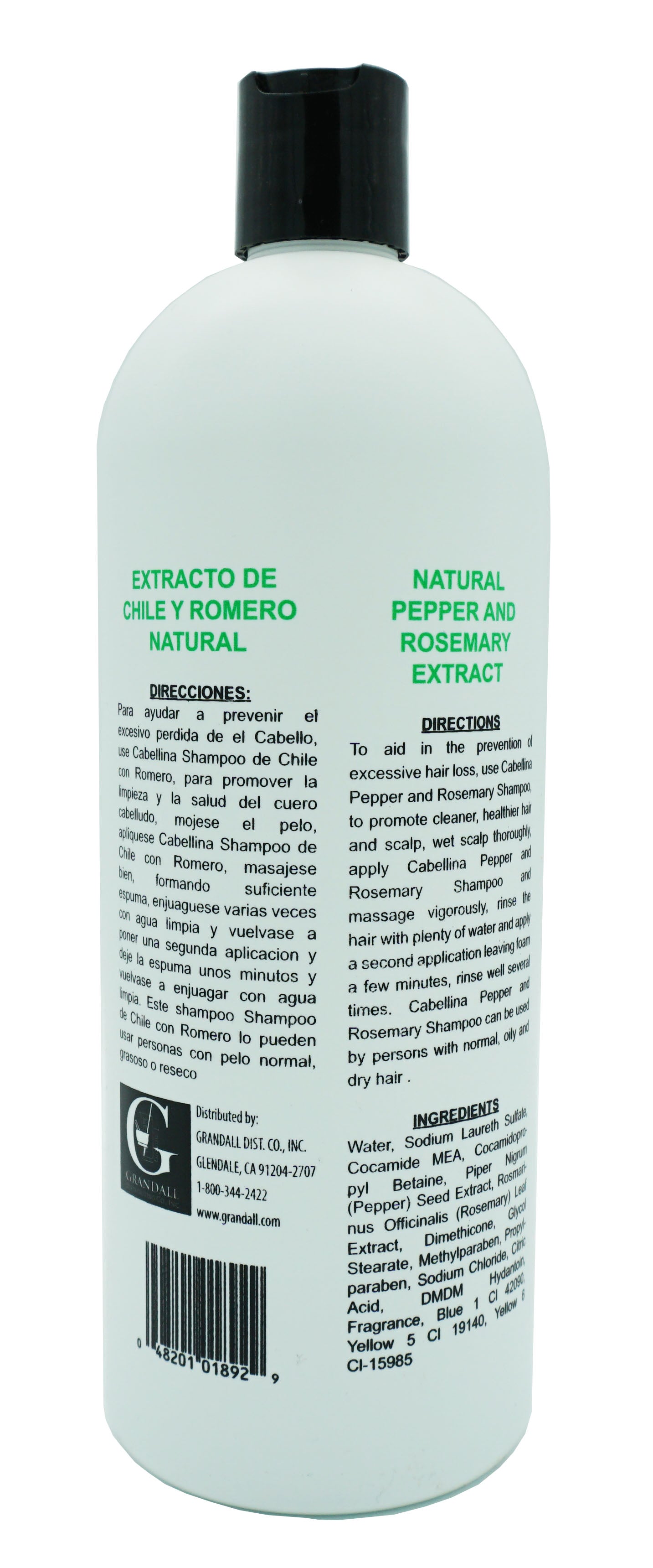 Cabellina Shampoo Chile con Romero es formulado con extractos de chile y romero. Este shampoo es recomendado para personas quienes su dilema principal el la caida de pelo.