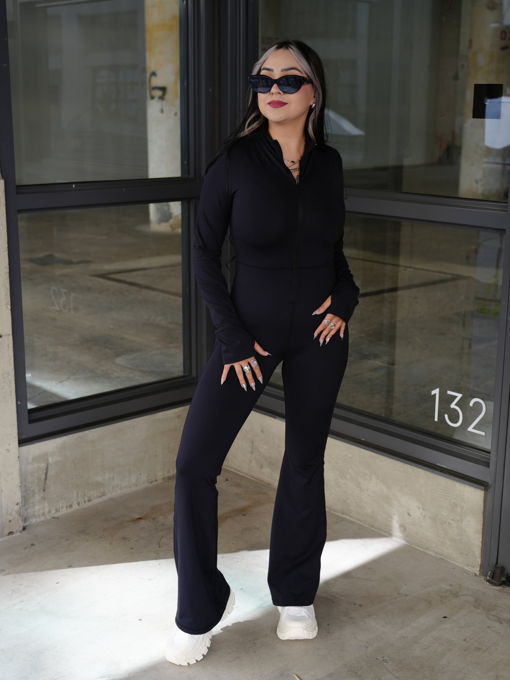 Siempre Activa | Zip Front Mock Neck Jumpsuit