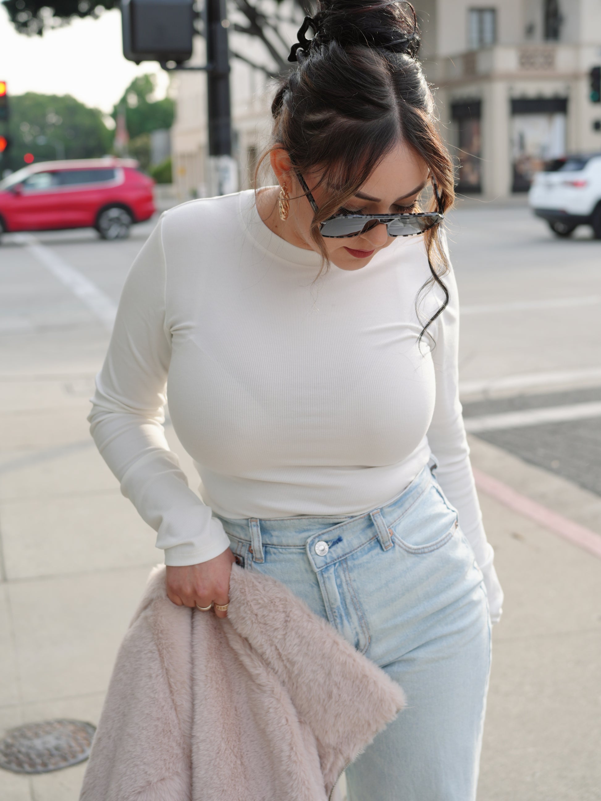 Our Cloud 9 top feels incredibly soft and ultra-flattering. Made with comfortable ribbed fabric for everyday wear. Style alone or use it as a layering piece in colder weather.